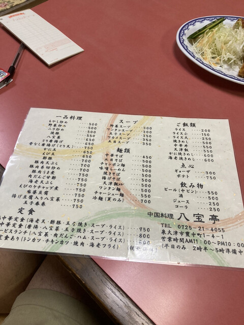 餃子、春巻き、骨付き唐揚げ、味噌ラーメン、炒飯、酢豚、ちゃんぽん、とか色々。