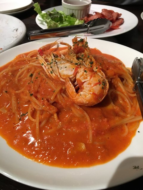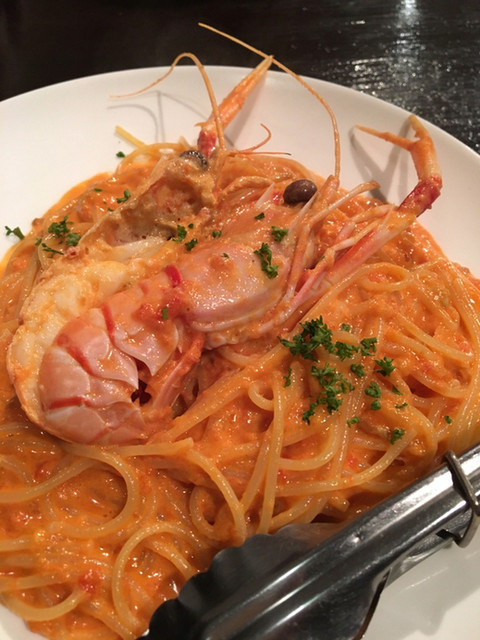 毎回オーダーする手長海老のクリームスパゲティも入ってたからなお良かった!