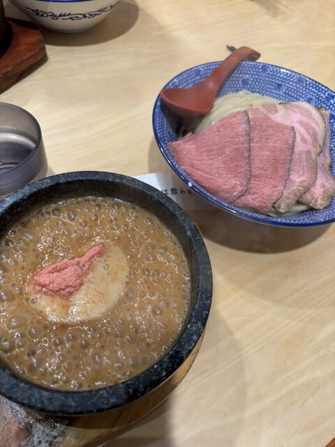 今回は妻も共に、特製石焼きつけ麺。大盛り無料で。あと炙りチャーシュー丼をシェアで。