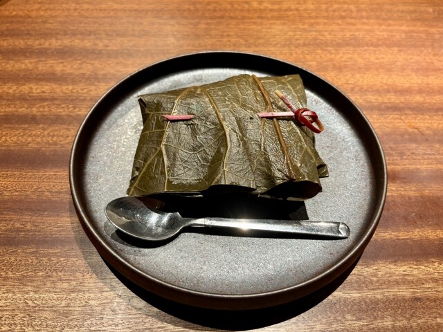 ♢鮑と海藻の蓮の葉包みおこわ 干貝柱•黒豚入り