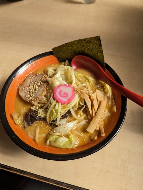 今日の昼は嫁さんと、恵み野に新しくできた直伝丸さんへ。嫁さんはあっさり塩ラーメンたまごトッピング、オイラは札幌醤油ラーメン。注文してから五分くらいで着丼、なかなか早いですね。味はオイラ達には少し濃いめ...