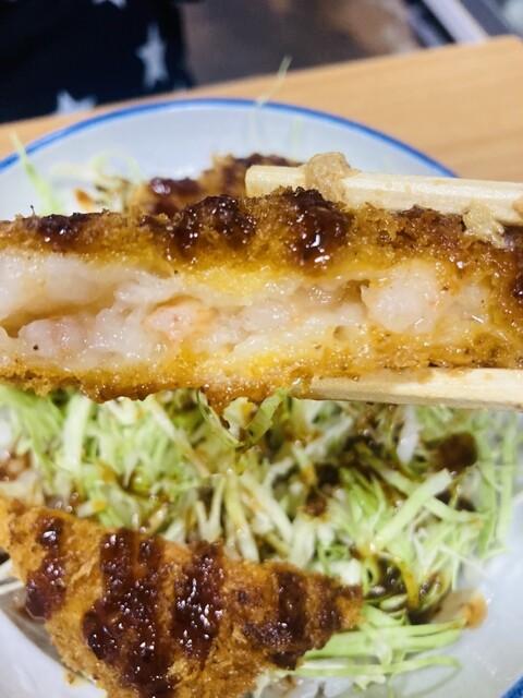 ぷりぷりの海老カツにソースが合うね