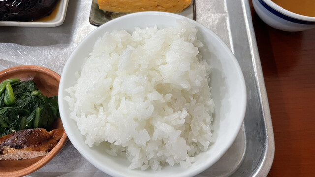 取り過ぎ注意⚠️と自分に思い聞かせて選んだのは玉子焼き、ナスの揚げ浸し?ほうれん草とタラコ、お味噌汁、そしてもちろん白ごはん