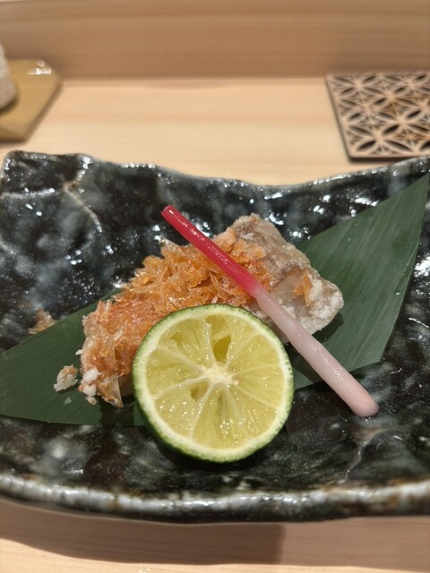 地下鉄の駅から徒歩2分ほど。脇のエレベーターで2階へ。入り口入るとカウンター、奥に個室。私達はカウンターへ。オープンして間もないとのこと。本日は13500円のコースでお願いしました。最初からテンションあがるお料理が続きます。穴子のにこごり、ナマコ、湯葉。おしゃれな器も素敵。お店のセンスの良さがでてます。握りは赤身、トロ、白身、貝もエビも全て申し分なく新鮮で美味しかったです。茶碗蒸しも絶品でした。粋な大将とちょこちょこお話しさせていただきました。スタッフの接客も申し分なくとても気を遣っていただきました。卵も美味しくて作り方教わりたいくらい。大好きなレモンサワーは果汁の酸味強めでさっぱりとしています。