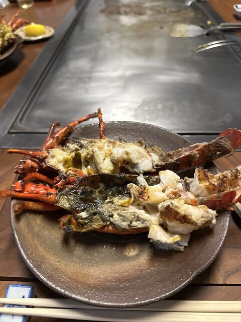 伊勢海老の鉄板焼きから始まり、ステーキも程よい焼き具合で美味しくいただきました