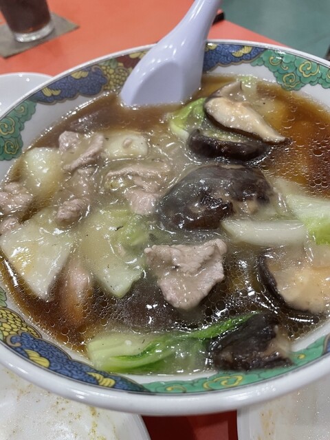■椎茸肉麺…甘みのあるスープがまろやかですごく美味しい。厚みのある椎茸がゴロゴロ入っています。3人ともずっと箸を動かしている状態で食べる手が止まりません。