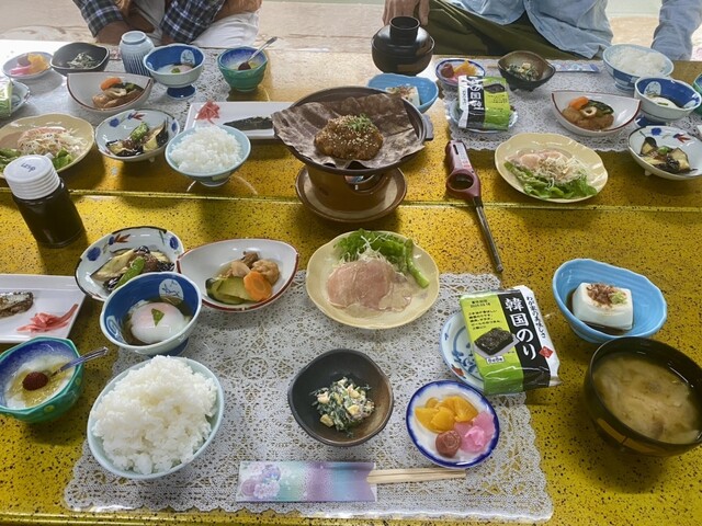奥さまの手作り晩御飯と朝ごはんは品数多くて絶品。