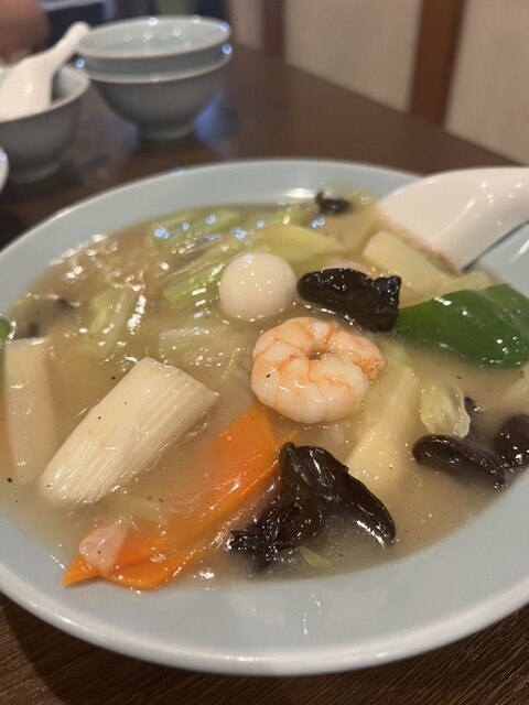エビチリはケチャップがたってる感じで、個人的には物足りない味付けであった。 2.8