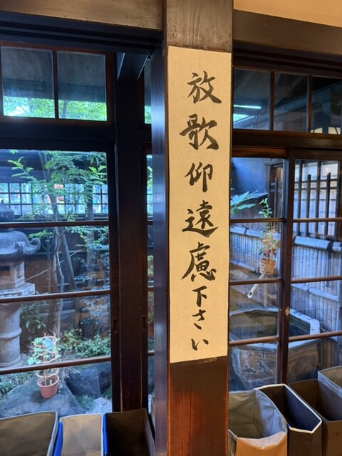 暖簾をくぐるとそこは昭和にタイムスリップしたような感覚におそわれる。1階では畳の床の上に直に置かれた重厚な木の板、これがテーブルである。渋すぎ。