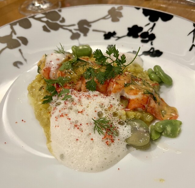 次にお魚料理は穴子とフォアグラのお料理。今回はこれが一番好みでした。フォアグラの味がしっかりして、いくつかのソースが組み合わされ食べる部位により様々な味がします。これはとんでもないレベルの究極の一品。