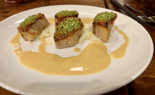 毎回、メインは肉にするのですが、今回は4人いるのでお魚のメイン、ビントロのローストを注文。これがまた本当に美味しくて、なるべく人数多めに来て色んなもの食べたいと思わせます。