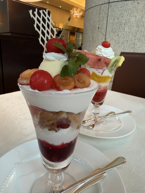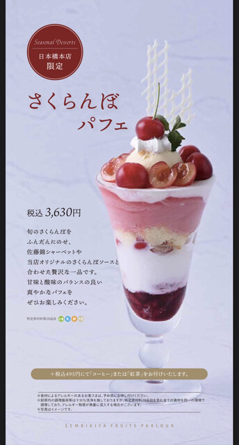 限定のさくらんぼパフェとコーヒーに