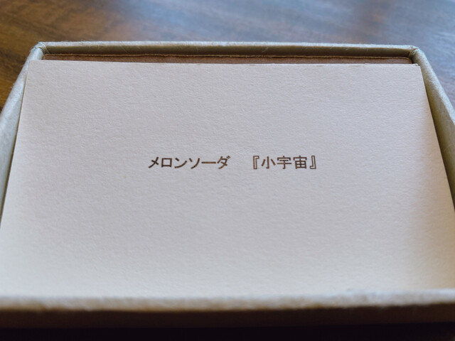 メロンのケースの中にアイス メロン クリーム ソーダが入っており、味のマリアージュにより宇宙を感じさせる味