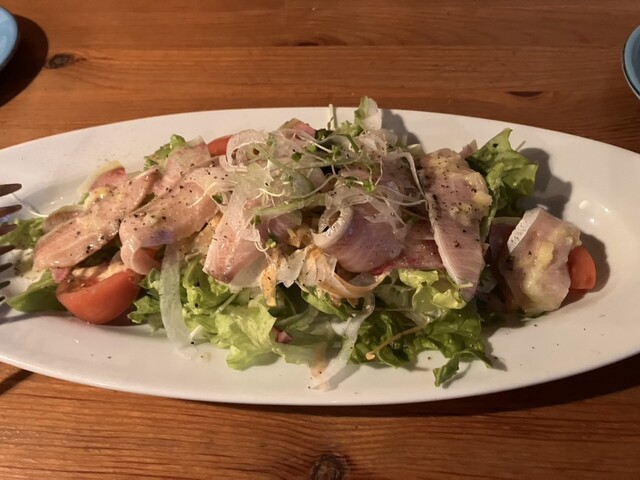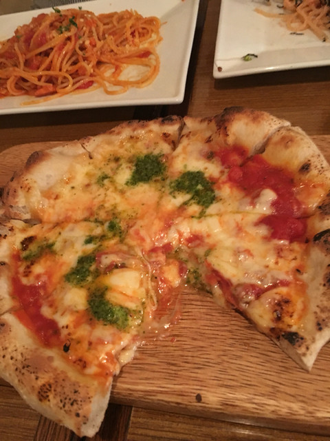 だいたい毎回チキンの焼いたのとピザとカルパッチョサラダ。ビールは赤星 なみなみ赤ワインいただきました(^^) ごちそうさまでした♪