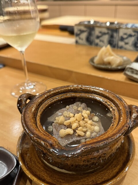 泡はピッコロサイズがありました。2杯くらい飲めるのでちょうど良い。こちらを飲みながらお料理スタート。旬のものを使った数々のお椀と、定番のクジラベーコンりこの日はもずくと海ぶどうの茶碗蒸しや、佐賀牛のお椀まで!鮎の低温調理のアンチョビソースも最高に白ワインにあう。伝統にとらわれないスタイルを生み出していくそうです。天晴れな美味しさ。