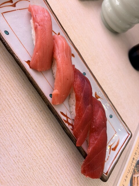 新年すしざんまいが一番マグロを競り落としたと聞き是非食べたいと思いすしざんまいを訪問。30分待ちとのことだが席はスカスカだけど?しかし10分待って案内を受ける。一番マグロ残ってますか?中トロは4カンしか取れませんが赤みは大丈夫との事。ならば中トロは全部!赤身は8カン注文。親切な店長がタイミングです!と。中トロも赤身もさすが生の本マグロ。すしざんまいが競り落として良かった!来年もすしざんまいにお願いしたい!