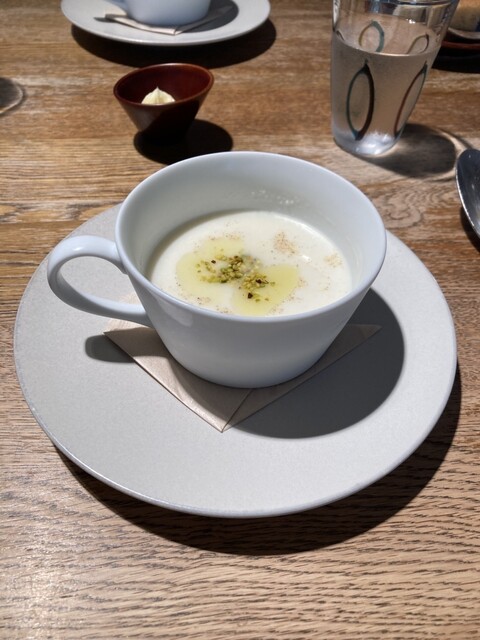 時知らず(サーモン)のマリネ グリーンガスパチョ