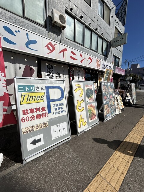 昼営業は、【うどん力】で、うどんと居酒屋、Cafeのメニュー。夜営業は、【北海道まるごとダイニングうまいっしょ!総本店】で居酒屋メニューになります。昼から、夜の居酒屋メニューが全て楽しめます。凄いメニューの数です。