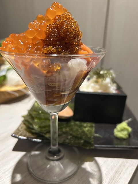 肉刺し、海鮮、お寿司などメニューはとにかくバラエティ