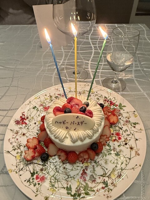 誕生日ケーキは主人がサプライズで発注してくれたそうです。いちご多めで!って。笑