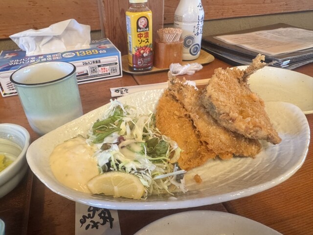 茅ヶ崎の西に有るお店です。開店前にお店の前に行くともう大勢が並んで開店を待ってます。早々に受付表に名前を記入して待つ事に。開店時間になり順次呼ばれて店内へ。先ずは一階席から、人数によっては二階へと振り分けながら入店して行きます。さて30分程で名前を呼ばれて店内へ。案内されたのは二階の座敷席でした。着席してメニューに目を通します。かなり多いメニュー、その中からお刺身御膳をオーダーしました。プラスでアジフライも。楽しみです。10分程待ったでしょうか、いよいよ御膳の到着です。ボリューム感有ります。ラッキーな事に骨せんべいが付いて来ました。刺身、骨せんべい、茶碗蒸し、冷奴、あら汁、香のものにご飯。メインの刺身は一つ一つが大きい。では頂きます。刺身はマグロから海老、ホタテ、アジなど七つ。生シラスもたっぷりと。刺身それぞれ新鮮で美味しいですがアジは格段に感じました。しっかりとした歯応えとアジの風味。そしてシラス。ご飯一膳では足りない量の刺身。因みにご飯は一回お代わりが出来ます。そしてアジフライ、肉厚でぷりぷり、そしてやはりアジの味が濃い。生シラスとアジで超満足。茶碗蒸しの具合はシラスと、これもうれしい。海鮮主体に食べ進めご飯は一回お代わりしました。満足、そして満腹です。ご馳走様でした寝苦しかった
