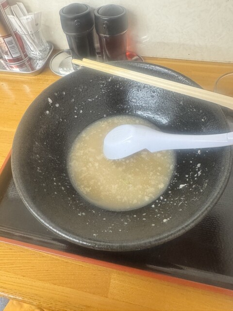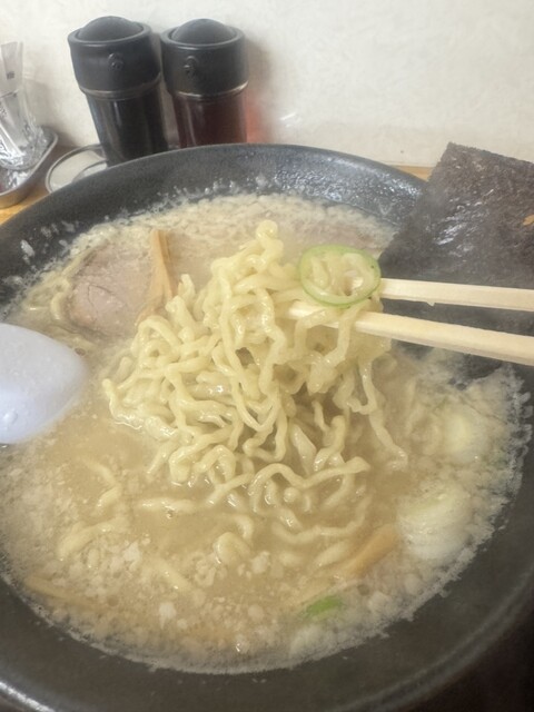 朝ラーを食べたく伺いました。しかしだいぶ前に開店時間が変わってたので新開店時間の30分程前に着いてしまいました。店舗前駐車場に入れて待つ事にしました。待ってる間に他のお客さんも車で来ます。さぁ開店時間8時45分です。1番で入店です。朝は直接注文で現金払いなのですね。気になっていたにごりラーメンをオーダーしました。厨房前のカウンターの奥に座りました。何か良い雰囲気、あっお冷はセルフです。給水機に向かいお冷を頂いてきました。次から次へとお客さんが来ます。大盛りオーダーの方もいらっしゃいます。と、私のオーダーが届きました。にごりラーメンです。良い香りが漂います。汁はにごり背脂ですね、器いっぱいに広がってます。では頂きます。先ずは汁を。思ったより軽く爽やかな感じ。美味しい。次に麺。美味そうなちぢれ麺です。舌触りが良くもちっとした感じがまた美味しい。麺と汁が合わさって美味しい。にごりは豚骨だと思うけどさらっとしてひつこく無く軽い感じですがコクを感じます。このラーメン毎日でも食べたい。チャーシュー、海苔、メンマも合わせながら食べ進みあっと言う間に完食しました。美味しかった。ご馳走様でした。