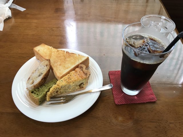前回と同じトーストとキッシュのモーニングを注文しました。飲み物はアイスコーヒーです。