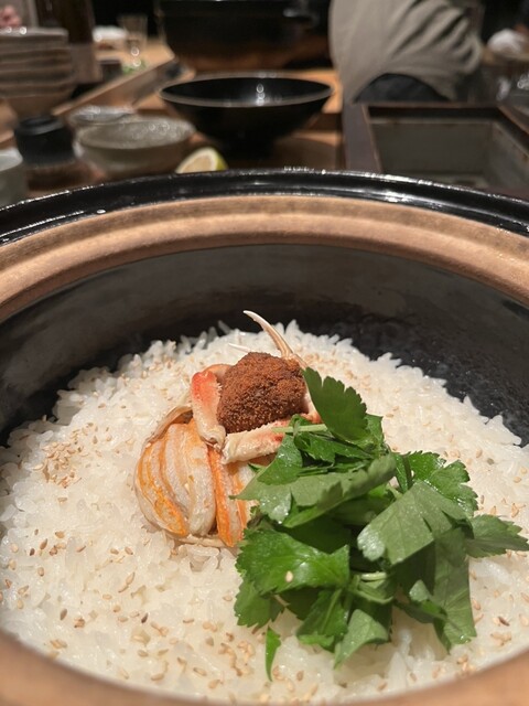 締めにも同じくまるまる1杯の蟹が入っていて、内子と外子も一緒に食べるご飯は贅沢の極み。