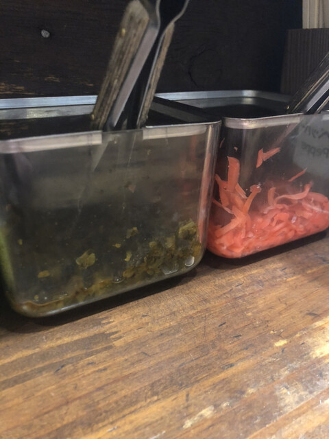 今回の訪問ではまかない丼と一緒だったこともあり、敢えて替え玉のサービスは辞退しましたが、それではと大将から磯海苔のサービスを乗せていただきました。