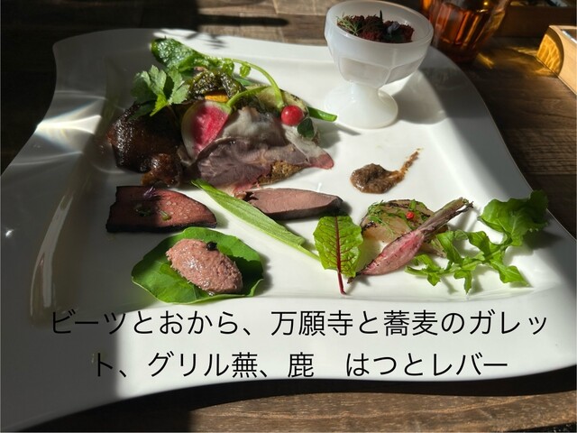 知人4人コースで予約。お腹にちょうど良い量、どれも美味しく頂きました。ワインもボトルで赤、白それぞれ頂きお手頃価格でほろ酔い気分。居心地か良かった為長居してしまいました。写真はコースの一部です。これ以...