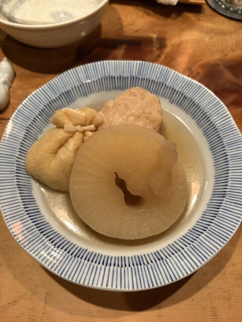 おでんの種は手作り感たっぷりのとのばかり。巾着、がんも、はんぺんどれも市販のものは違い、一つ一つに個性を感じるものばかりでした。