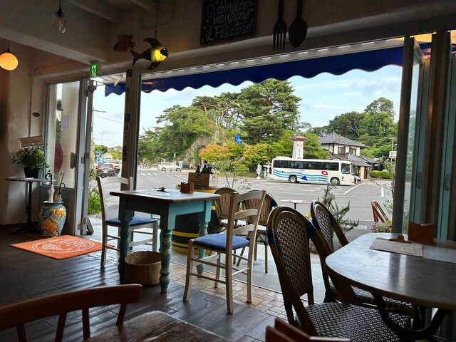 お店の雰囲気も本当に良くて、2Fの席からは海も見えるようです。松島の海の風景とも相まって、イタリアの食堂に来たような空気感は、松島観光の締めにぴったりでした。