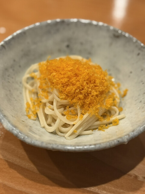 さらに、追加でうにドックや赤貝刺身、とろたく巻、あん肝うま煮、からすみそば、しじみ汁も注文しました。どれもとっても美味。中でもとろたく巻はとろける脂とたくあんの食感が絶妙で感動的。どのお料理も完成度が高く、鮪好きにはたまらない一軒でした。
