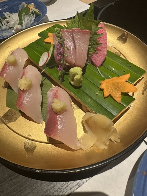 和牛握り寿司は肉厚で脂も乗っていて少し硬かったけど美味しいです!