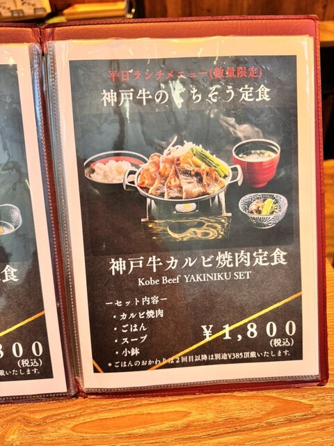 至福の旨みを噛みしめる「神戸牛カルビ焼肉定食」 1,800