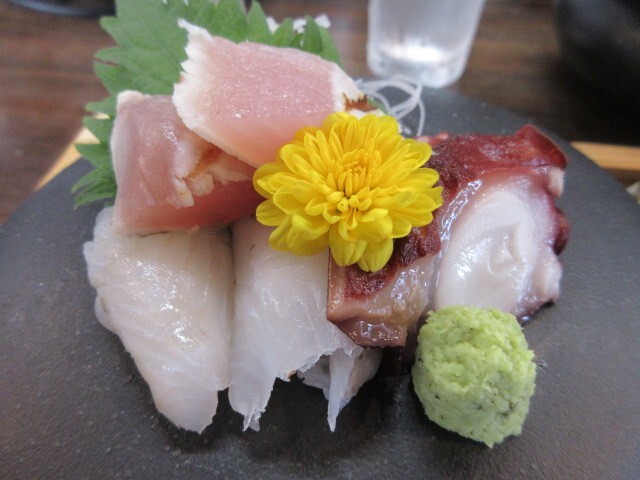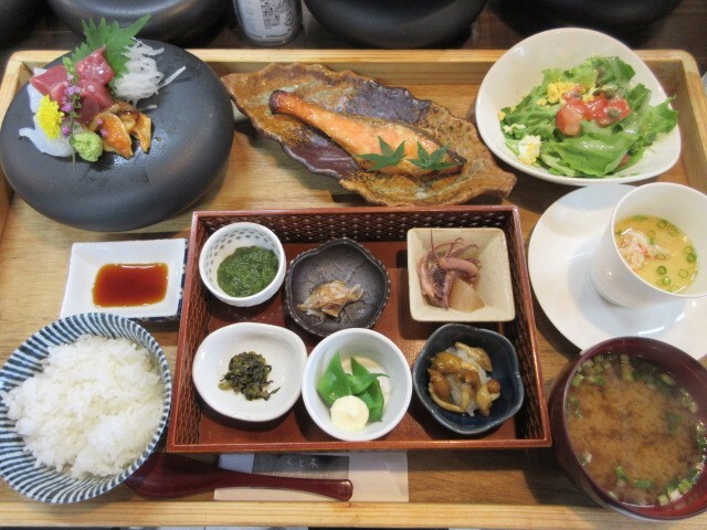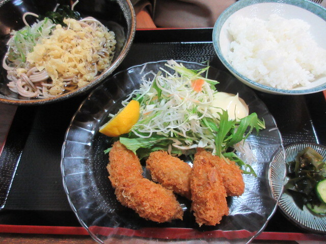 刺身盛り、石巻産大粒カキフライ定食、ミニソースカツ丼セット