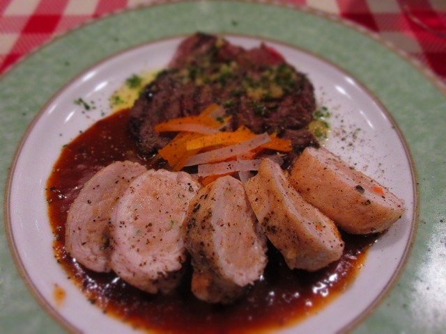 ボジョレーヌーヴォーにぴったりの、牛たんのバターソース、チキンのファルシ他