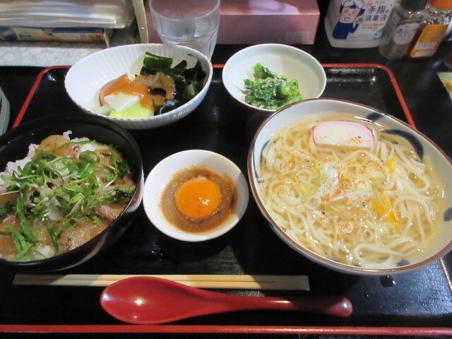 本日のサービスランチメニューは、鯛漬け丼と鯛出汁うどん定食