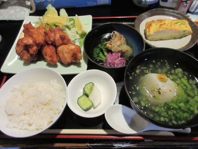 鳥唐揚げとカブのあんかけ汁定食(ご飯少なめをリクエスト)930円