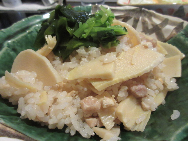 小鉢は、こごみのからししょう油和えと、菜の花の黒ゴマ和えで、季節を感じますね。