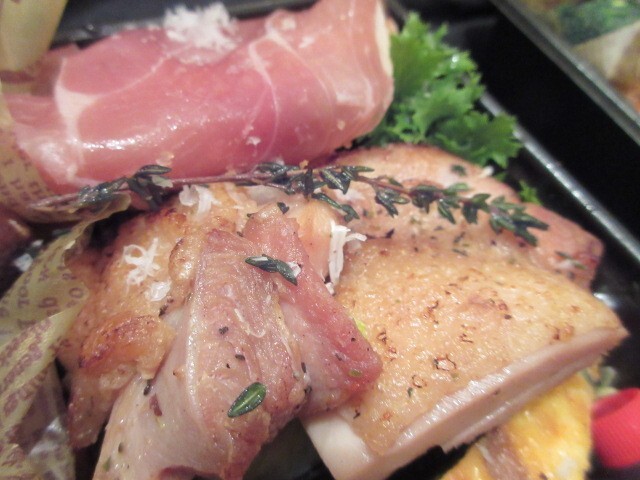 チキンのハーブロースト、豚フィレのカツレツ プロシュート添え
