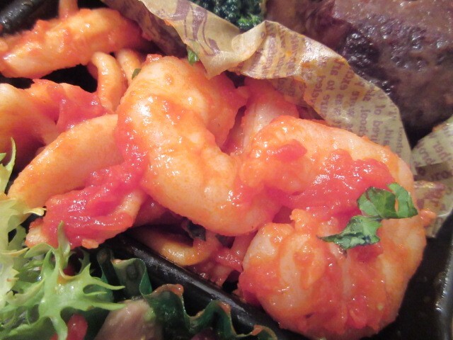 牛ホホ肉の隣は、エビとキノコのトマトソースフジッリです。大きくてプリプリの海老とエリンギなどのキノコ、もちもちフジッリ(パスタ)の食感が良かったです。