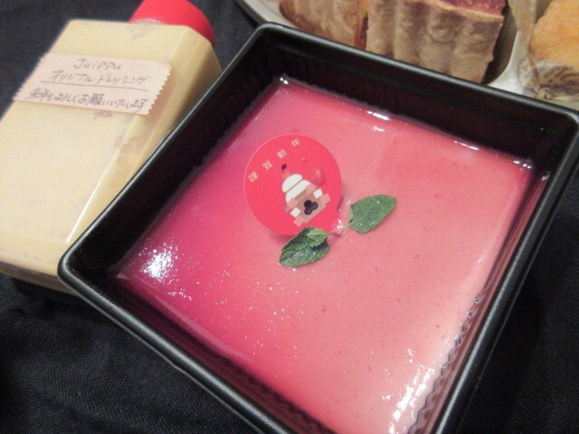 洋テイストのお料理に、れんこん、曲がりねぎ、黒豆、ごぼうなど、和食で使う食材を、ジュイップさんならではのセンスで組み合わせて、おしゃれでおいしく、完璧なオードブルとなっていました。今年もジュイップさんには、職場の忘年会などで、大変お世話になりました。いつも温かく迎えてくださった店主さんご夫妻に感謝です。来年も行きますので、よろしくお願いします。