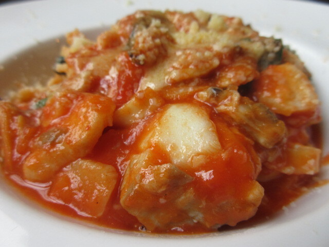 タコと米ナスのトマトソースパスタ。こちらも今回初めての組み合わせです。大きめに切った、しっかりした食感のタコがいっぱい。とろりとした米ナスに濃厚トマトソースがなじんでおいしい~。