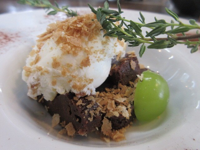 人と木さんはデザートもすばらしいです。今回は、ショコラテリーヌにキャラメルアイスのせ、マスカット添えです。なじみのお店で、季節を感じる種類のフルーツを仕入れているとのこと。