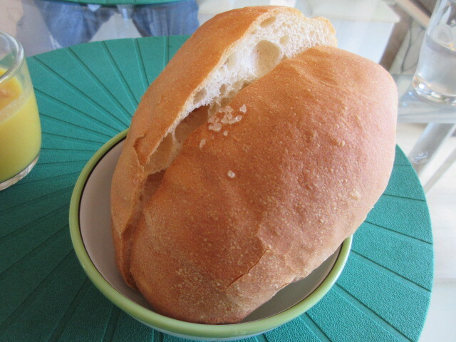 ここからランチになります。にんじんの冷製ポタージュと自家製塩パン。ポタージュは冷え冷えで、にんじんの甘さが濃くておいしい~。自家製塩パン、おいしいから販売してくれたら嬉しいです。
