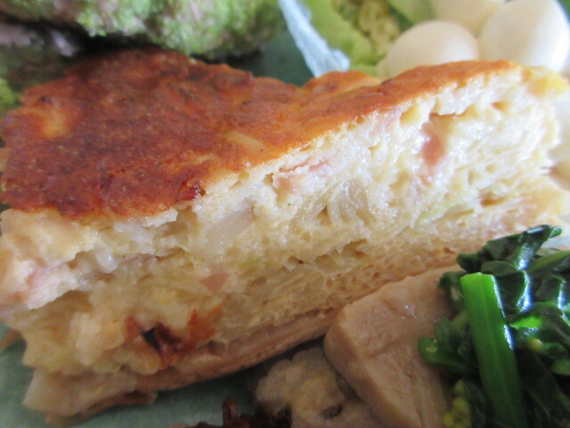 新玉ねぎと春キャベツのキッシュはやわらかい生地に野菜のシャキシャキが良い。