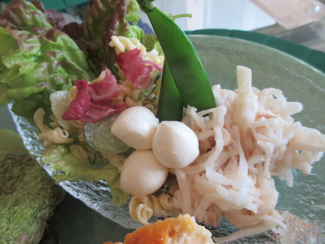 大根のサラダ、マカロニサラダ、モッツァレラチーズ