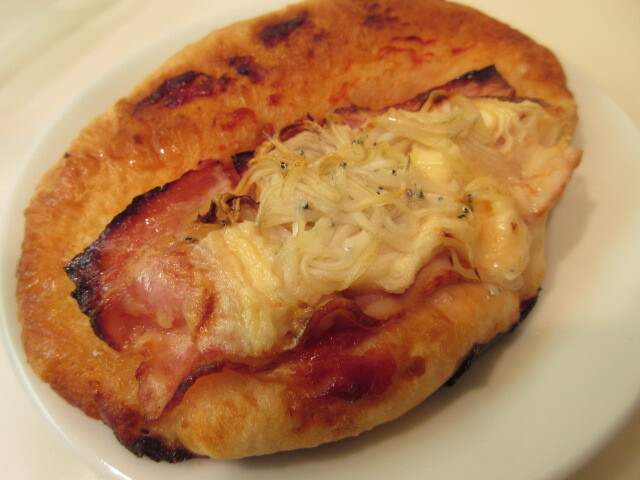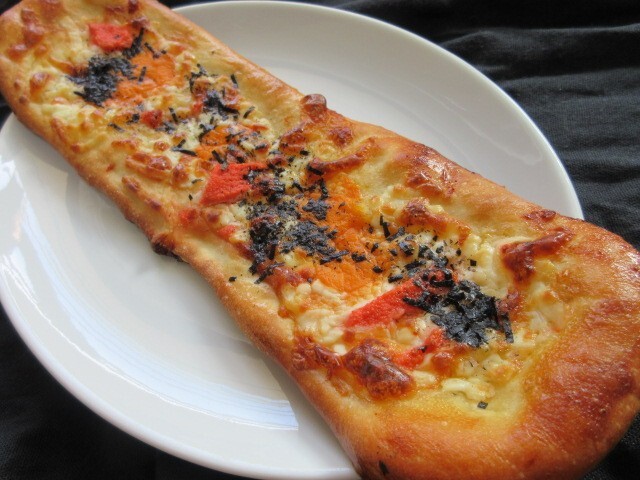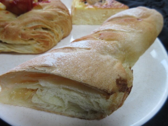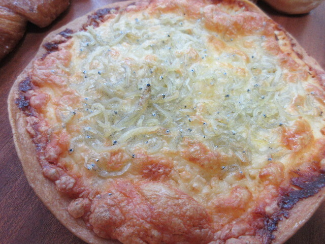 濃厚なチーズケーキ440円は、ホール(8ピース分)でリュクス(北海道クリームリーズ)をなんと500gも使用。通常は200gくらいとのことで、2倍以上のクリームチーズを使っているので、驚くほど濃厚で絶品です。長~いピザ250円は、なんと長さ32センチ!明太子、マヨネーズのせでおいしい!季節のデニッシュ250円はオレンジのせで、中には杏とカスタードクリームがたっぷり。しらす220円は、カリッと焼けたしらすが風味良い!