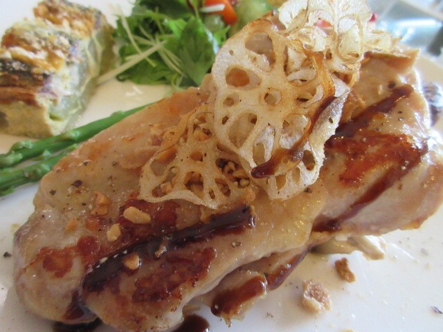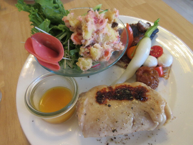 メインは、鶏もものグリルで、自家製麹漬けなので旨みがあってやわらかい。白いのはカブのソースで、初めて食べたけど、優しい味わいでおいしい。